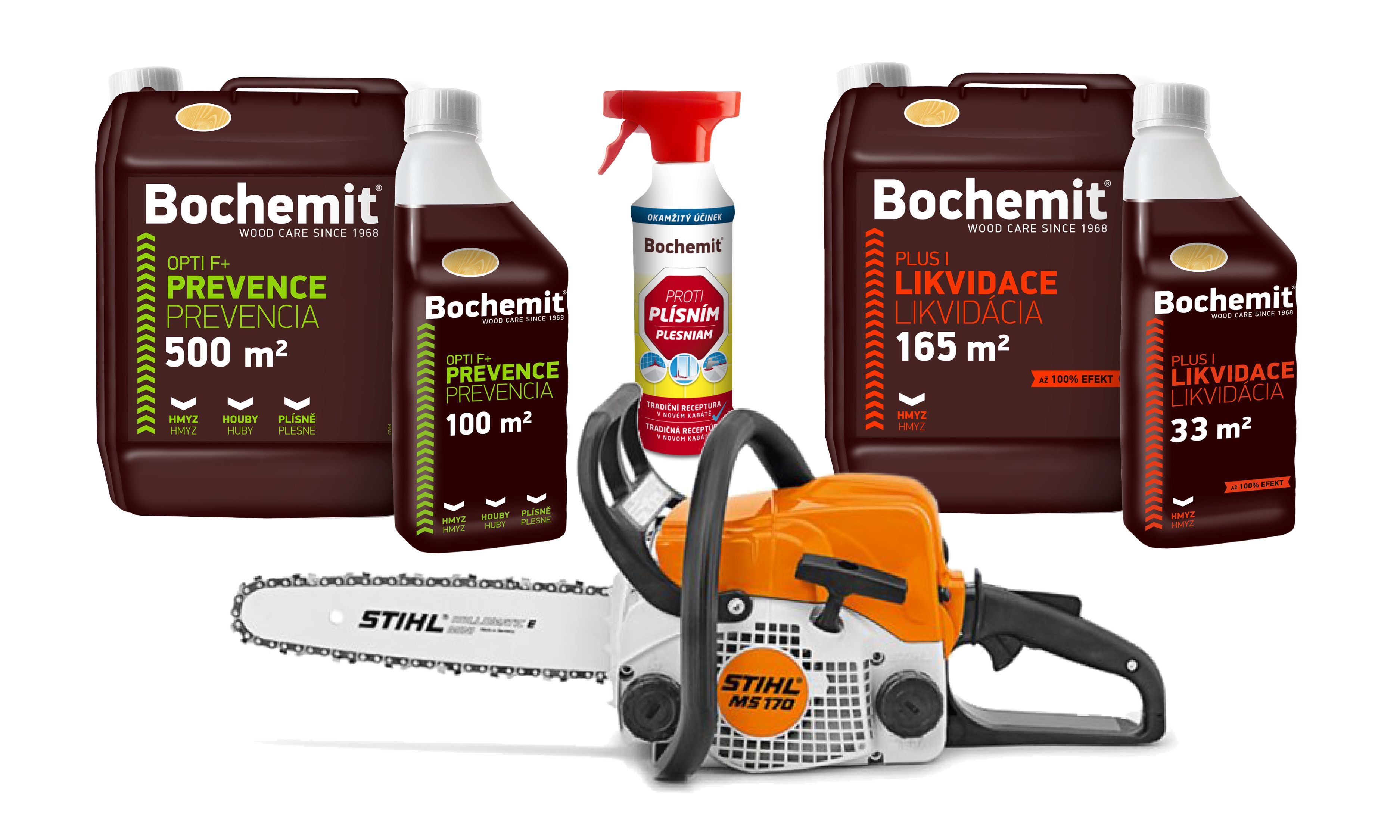 Bochemit impregnation products and a chainsaw valued at CZK 10,000