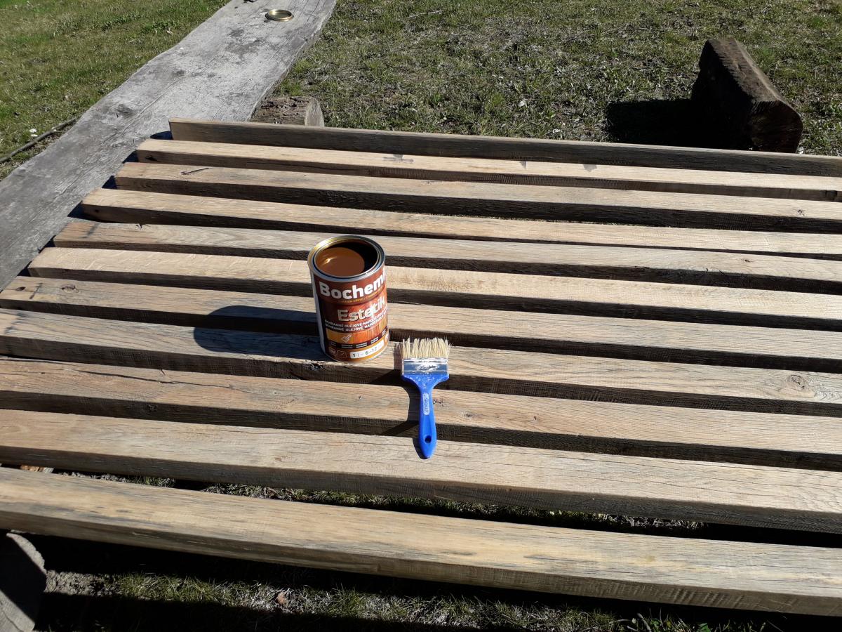 - Once you have disassembled the bench disassembled, we recommend directly impregnating it against wood-decaying insects, fungi and mould. This will prolong its useful life. Temperature fluctuations and rain cause wood to shrink and expand, causing cracks to appear. For larger cracks, unimpregnated timber is more susceptible to infestation from biotic pests, which can penetrate the wood through these cracks. BOCHEMIT Hobby - in its colourless format - should do the trick. A one-kilo bottle will be enough to treat a small bench.